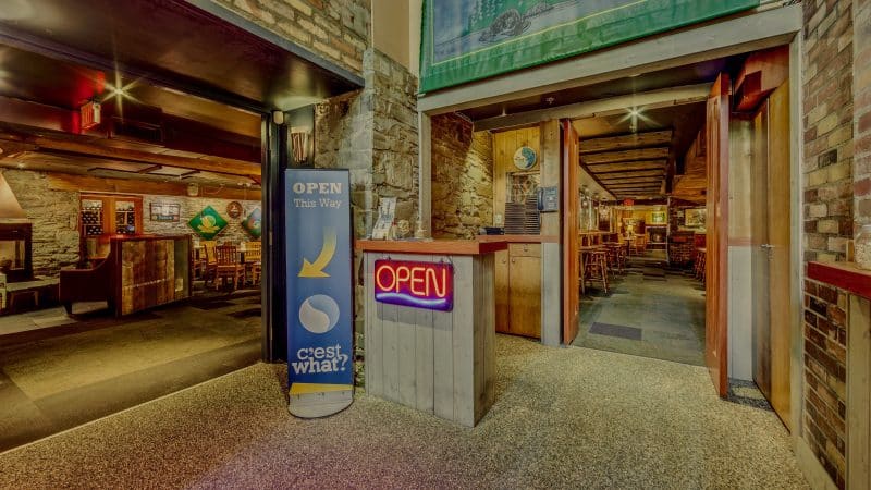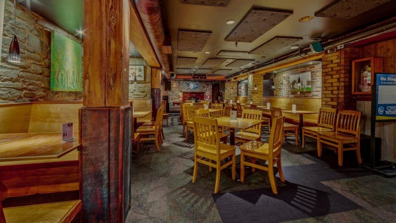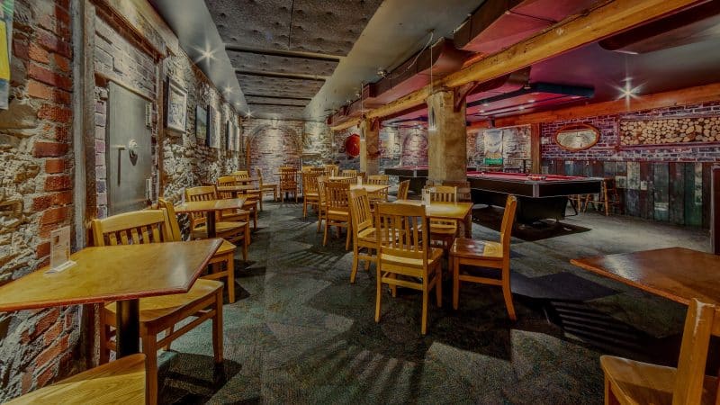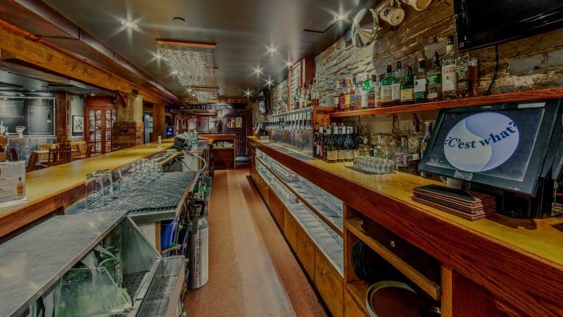 Loading ... Bar height tables and a pool table at the end Loading ... Fireplace and sofas at end of private room Loading ... Our (mostly) private room Loading ... Where the indie music magic happens Loading ... Indie music, trivia, or presentation space Loading ... Bar height tables opposite the original bar Loading ... The original bar, down the stairs, straight ahead Loading ... The second bar, down the stairs to the left Loading ... The dining section opposite the bar Loading ... The fireplace area to the left of the entrance Loading ... Two of our three pool tables Loading ... The dining section to the north of the bar Loading ... The entrance to true local flavour Loading ... Steps below Front StreetWhat lies below Front Street? Here are a few photos to give you an idea.